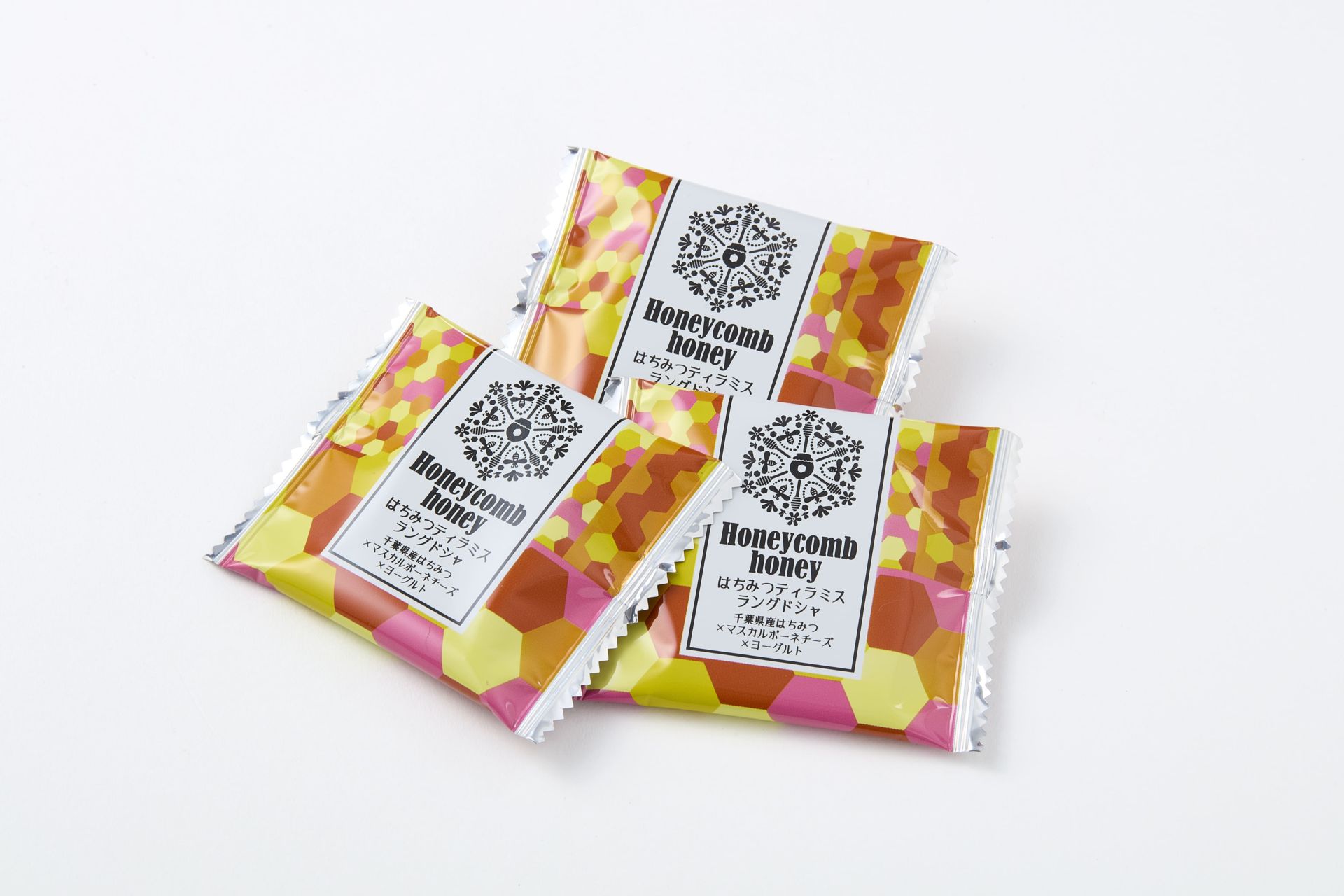 【原材料名】準チョコレート(国内製造)(砂糖、植物油脂、チーズ粉末、脱脂粉乳、ココアバター)、小麦粉、砂糖、マーガリン、卵白、乳等を主要原料とする食品(発酵バター、植物油脂、バターオイル、その他)、殺菌発酵乳パウダー、脱脂粉乳、油脂加工食品、はちみつ/乳化剤、膨張剤、香料、ソルビット、カロチノイド色素、(一部に小麦·卵·乳成分·大豆を含む)