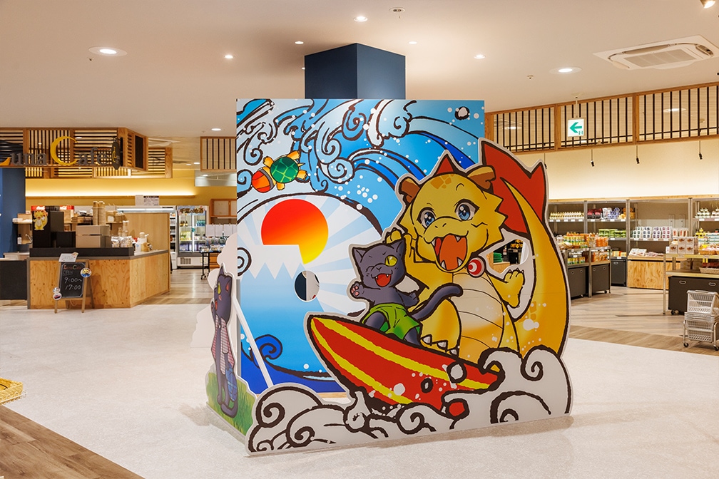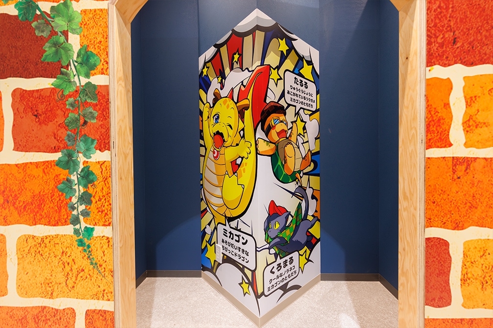 ミカゴンの顔出しパネルのフォトスポットもあり楽しい空間となっています。