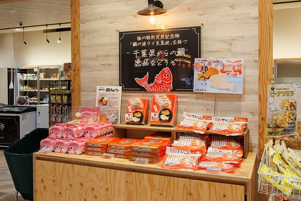 千葉のいいものをふんだんに取り揃えた売店で、食材の宝庫千葉県自慢の海のもの・山のもの、
